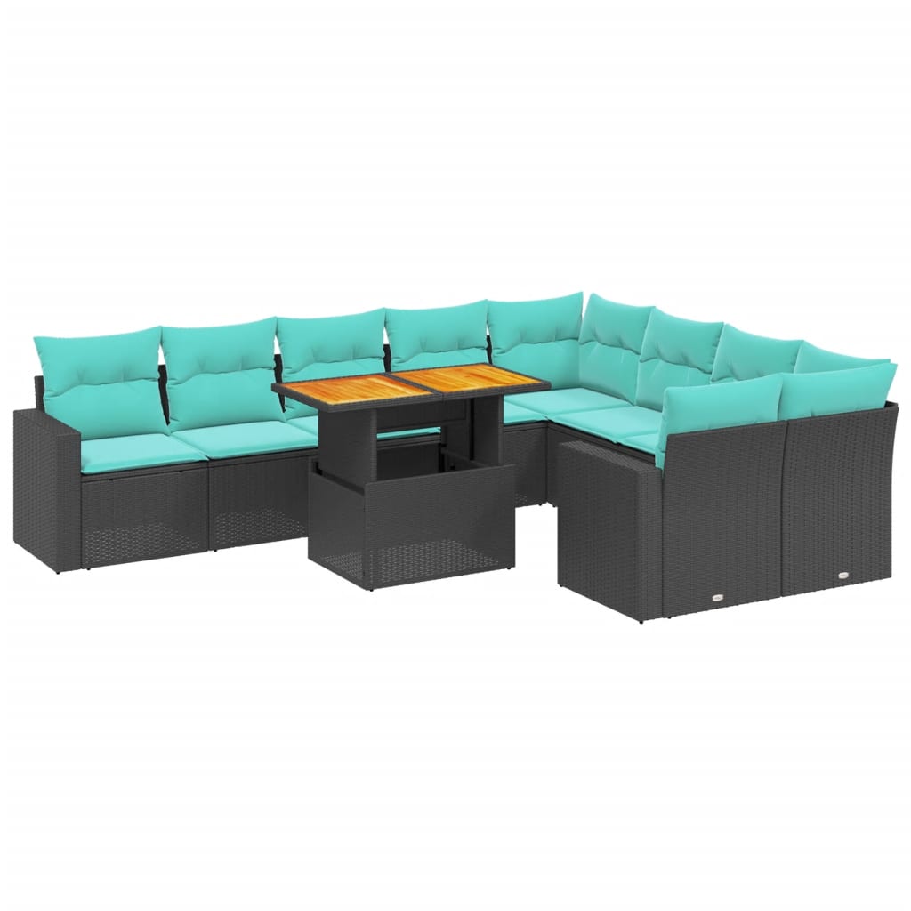 10 Piece Patio Sofa Set with Cushions Black Poly Rattan