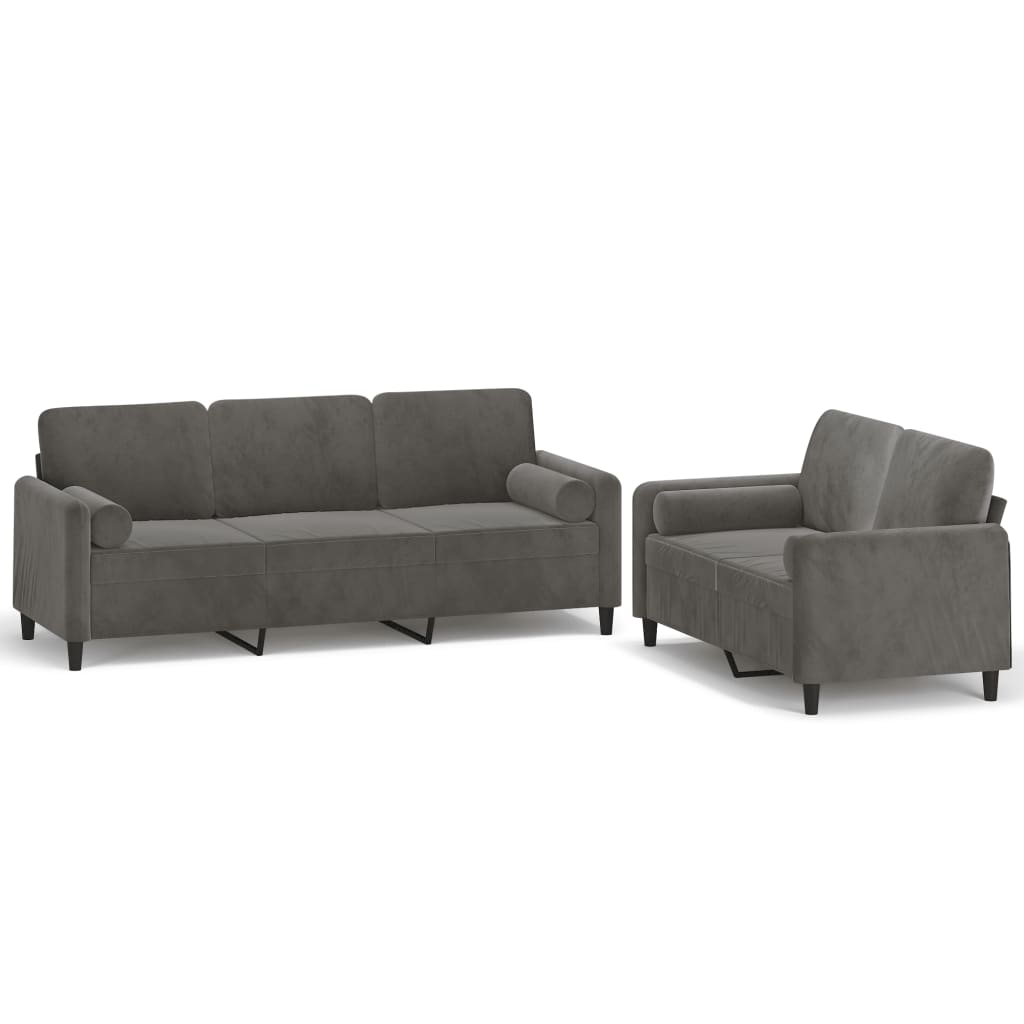 2 Piece Sofa Set with Throw Pillows&Cushions Dark Gray Velvet