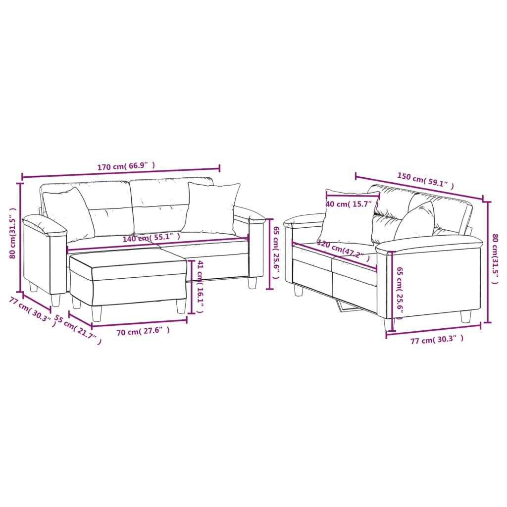 3 Piece Sofa Set with Pillows Dark Gray Microfiber Fabric
