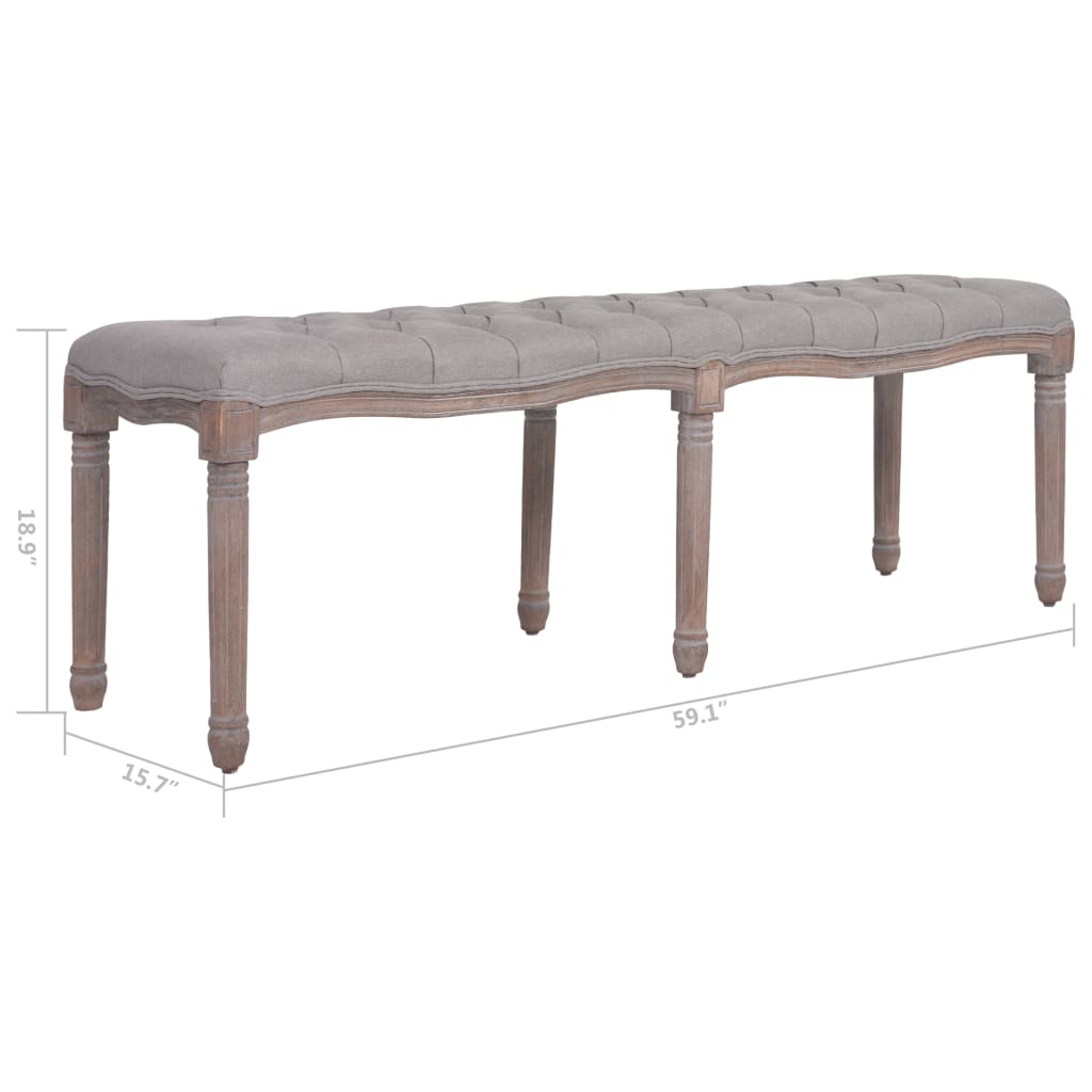 Bench Fabric Solid Wood 59.1″x15.7″x18.9″ Light Gray