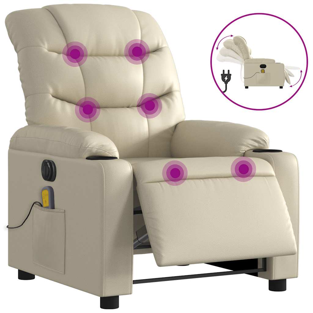 Electric Massage Recliner Chair Cream Faux Leather