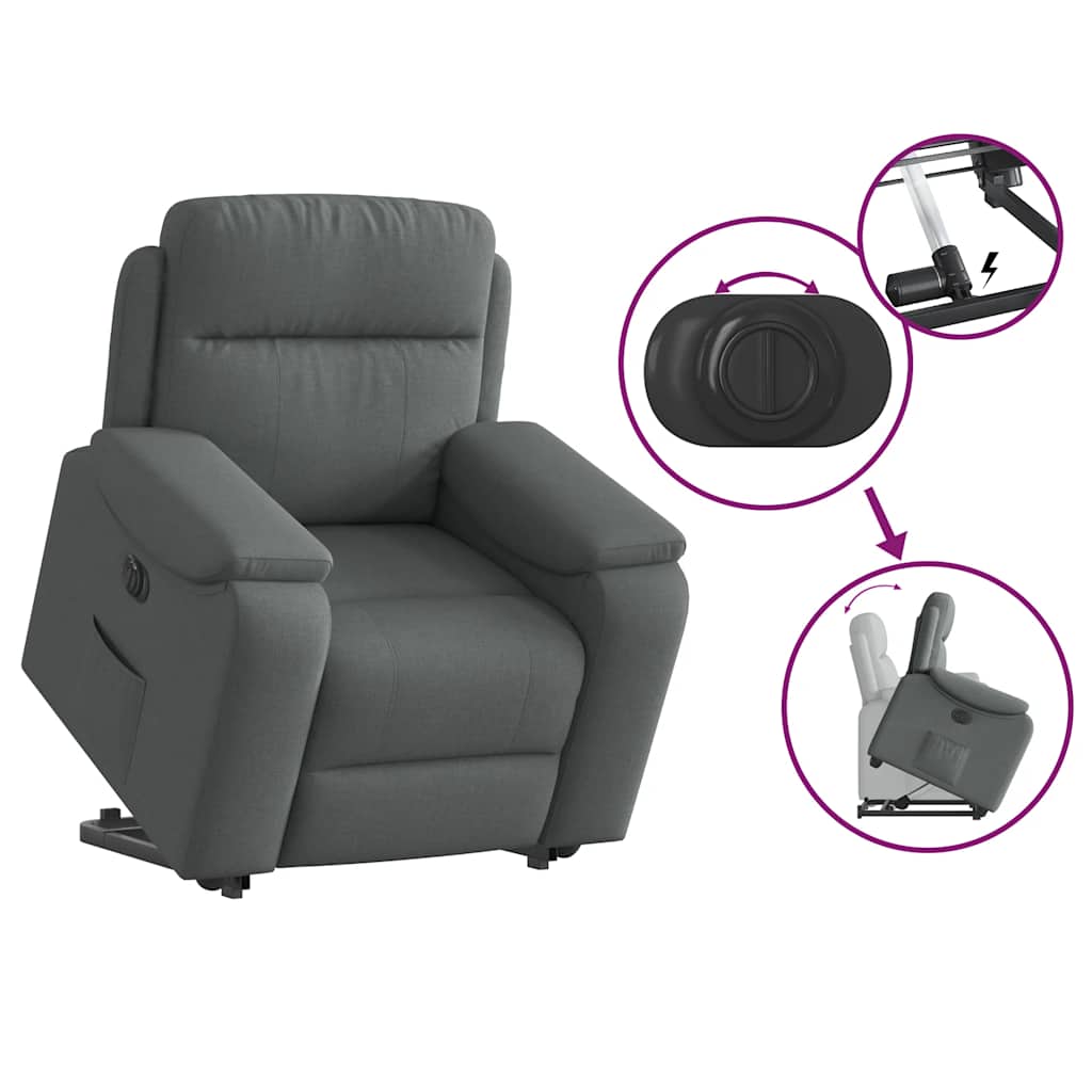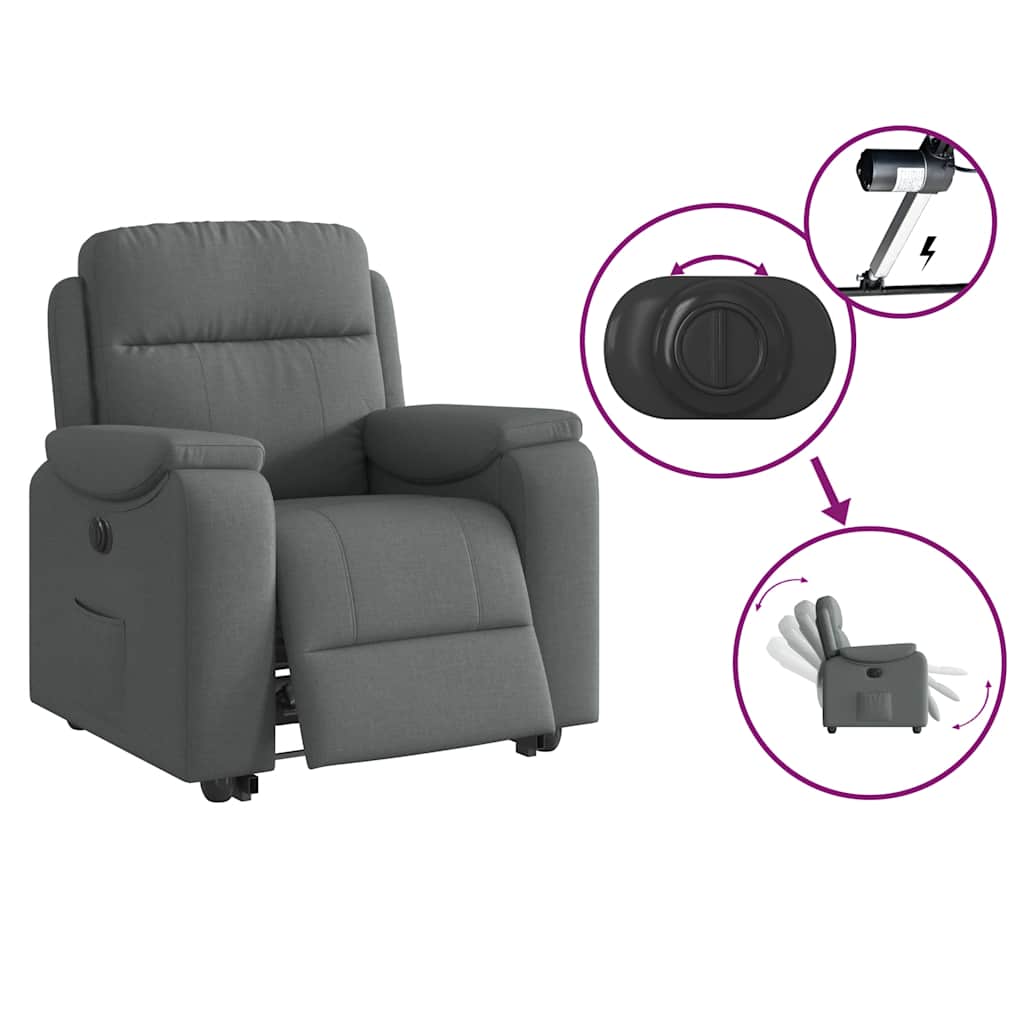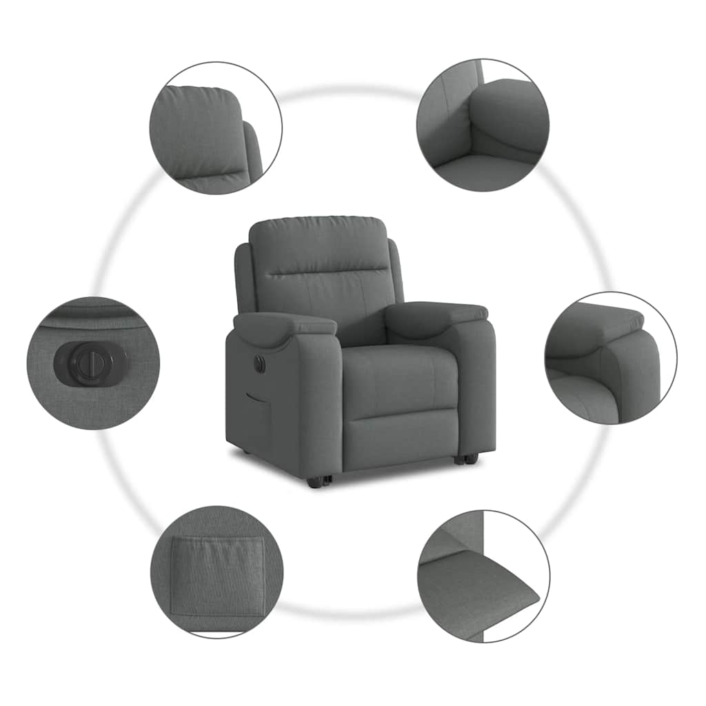 Electric Stand up Recliner Chair Dark Gray Fabric