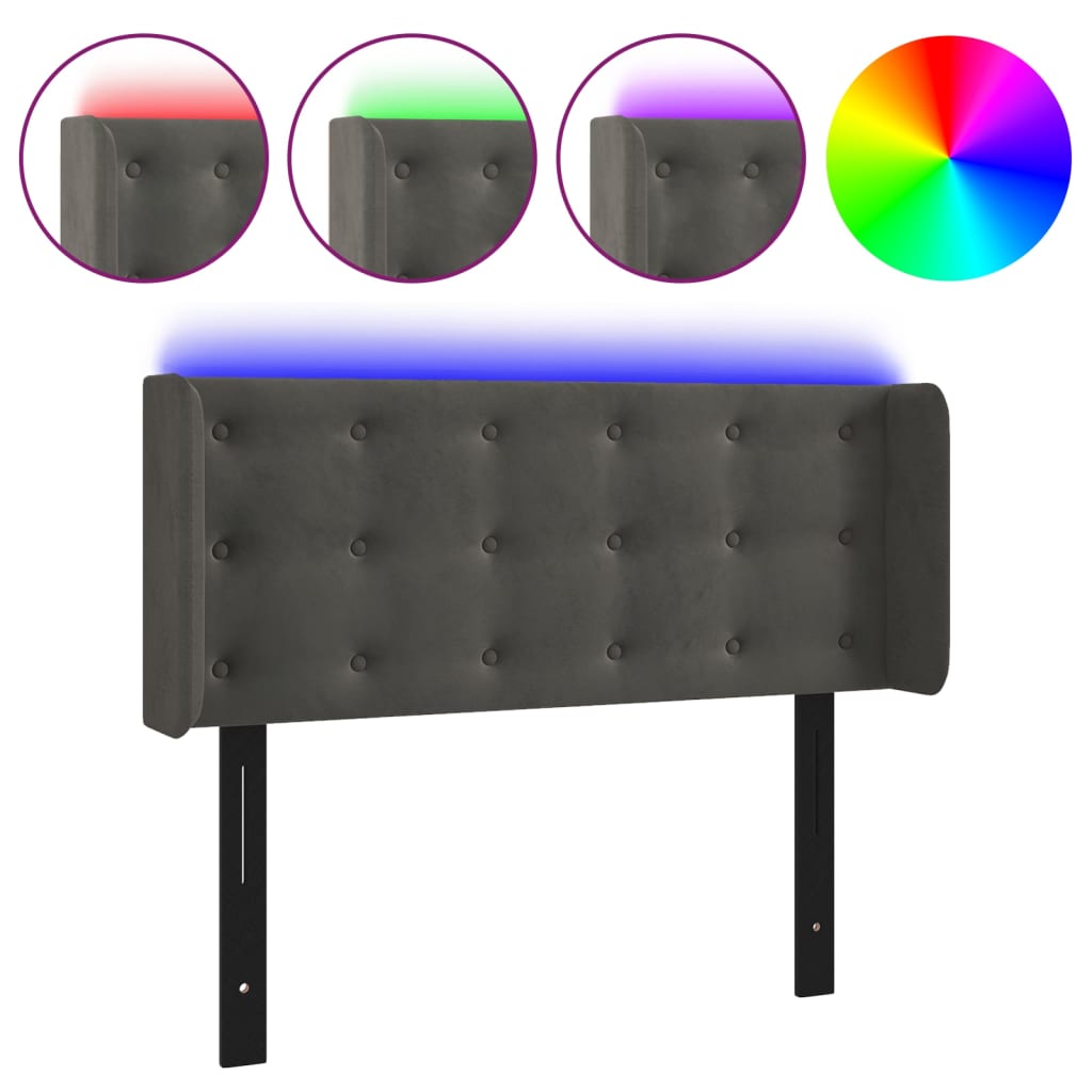 LED Headboard Dark Gray 40.6″x6.3″x30.7″/34.6″ Velvet