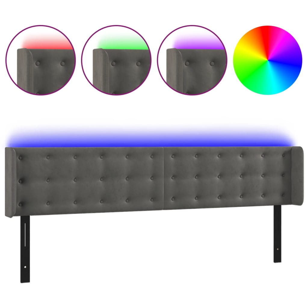 LED Headboard Dark Gray 79.9″x6.3″x30.7″/34.6″ Velvet