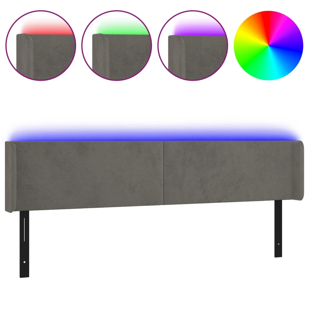 LED Headboard Dark Gray 79.9″x6.3″x30.7″/34.6″ Velvet