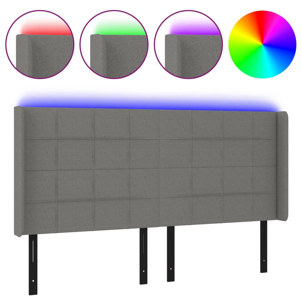 LED Headboard Dark Gray 79.9″x6.3″x46.5″/50.4″ Fabric