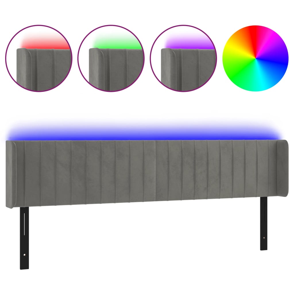 LED Headboard Light Gray 72″x6.3″x30.7″/34.6″ Velvet